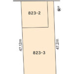 | 備考 | ・建築条件なし ・公簿面積取引(国土調査済) ・823番3は地目が田のため、農地転用は売主負担、地目変更は買主負担 ・上水道菅、公共下水管は既設引込あり |