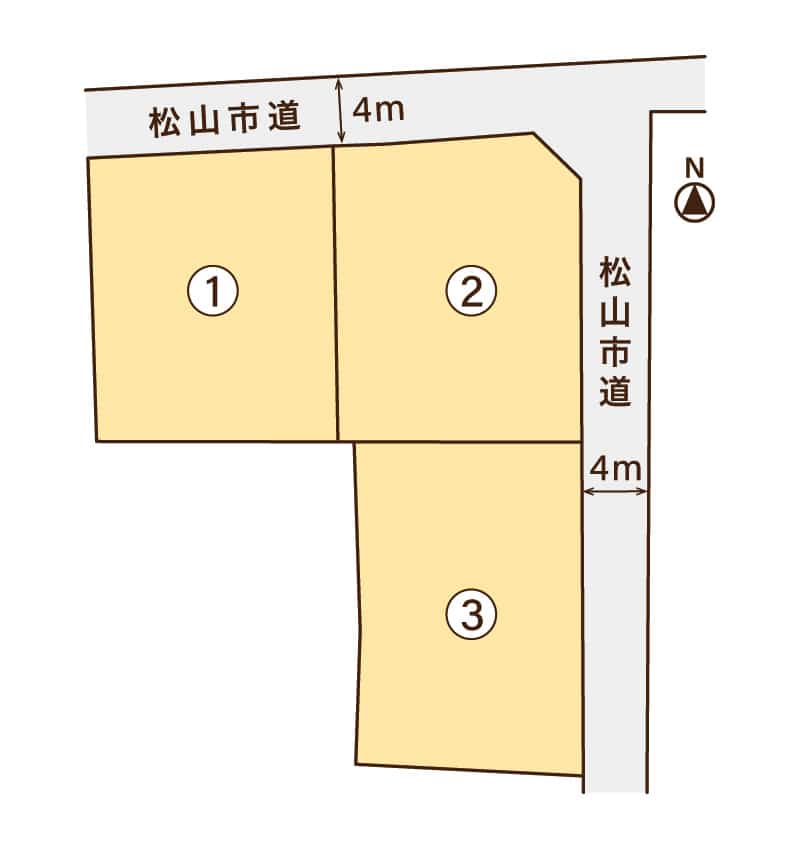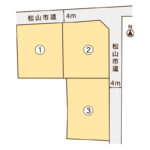 | 道路 | 北側 幅員4m 松山市道、東側 幅員4m 松山市道 |