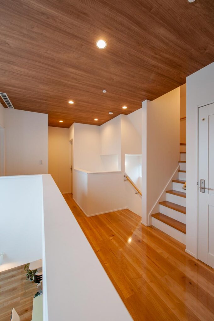 子供たちそれぞれの個室に加え、スキップフロアを効果的に取り入れたり、