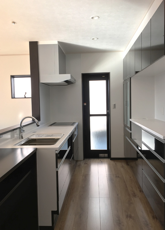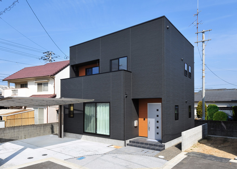 スッキリとした箱型のシルエットにブラックの外壁が印象的なK様邸。