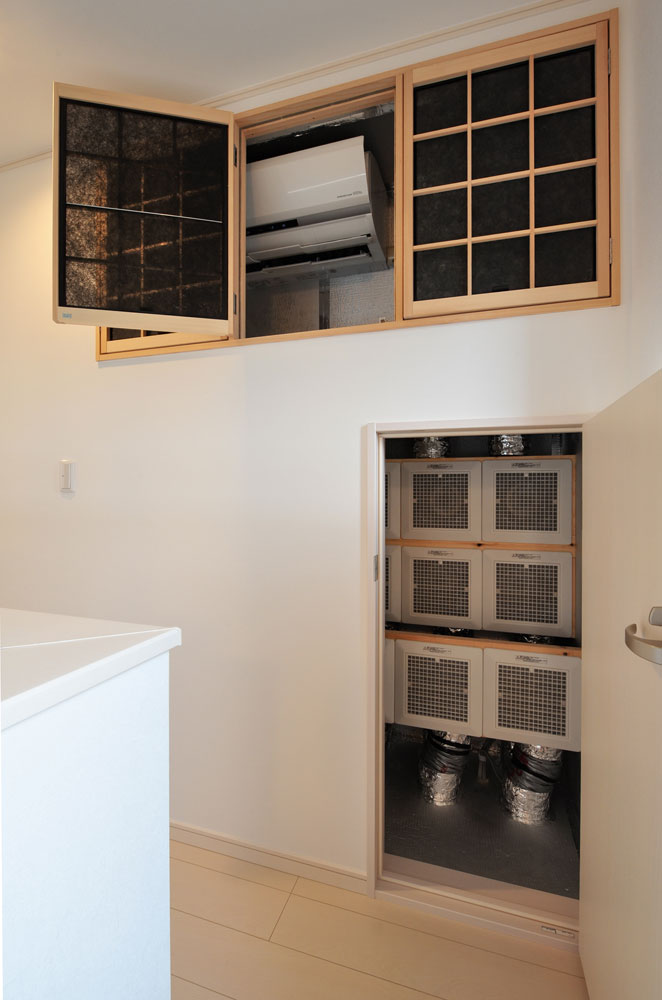 1畳の省スペースに設置された2階空調室。