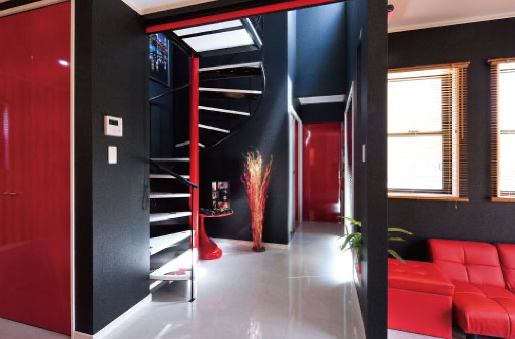 注文住宅松山市 O様邸黒と赤のコントラスト